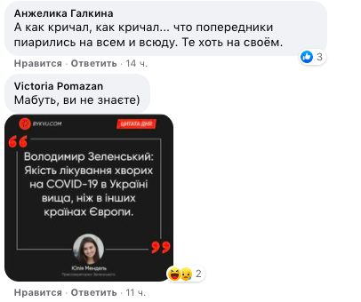 Зазначимо, що ті маріупольці, які особисто стикнулись з таким явищем як COVID-19, кажуть про жахливий стан місцевих лікарень, ставлення до хворих і брак ліків. Також жителі звинувачують місцеву владу, яка на їх думку замовчує ситуацію, щоб не псувати власні політичні рейтинги напередодні місцевих виборів.