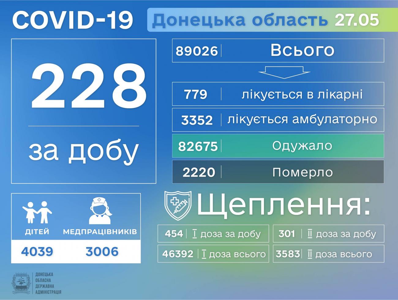 За четвер, 27 травня, в області виявлено ще 228 хворих. Про це на своїй сторінці у Фейсбуці повідомив голова Донецької ОДА Павло Кириленко.