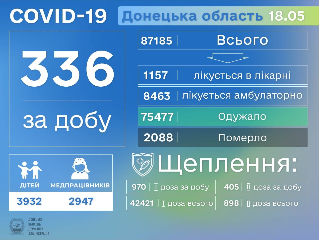 Всього с початку пандемії на Донеччині на коронавірус захворіли 87185 людей, 2088 — померли.